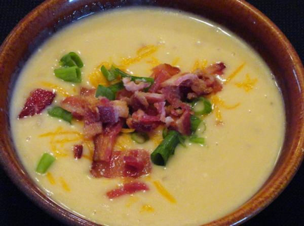 Garnish with shredded cheddar cheese & bacon pieces. I also used a little green onion to garnish.